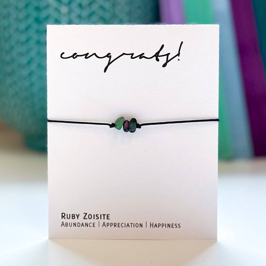 This delicate adjustable crystal bracelet makes a wonderful gift! The nylon cord expands to easily slip onto any sized wrist and can be tightened to fit. This is a perfect little gift for any celebration!