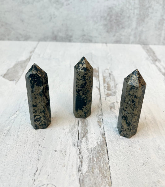 Black Pyrite Towers- Strength, Protection, Creativity, Luck, Prosperity