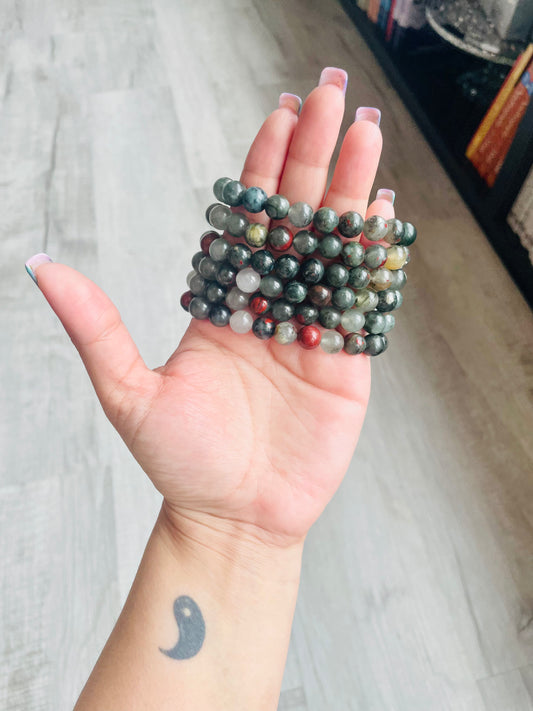 Bloodstone Crystal Bracelet- Strength, Courage, Protection, Grounding, and Root Chakra