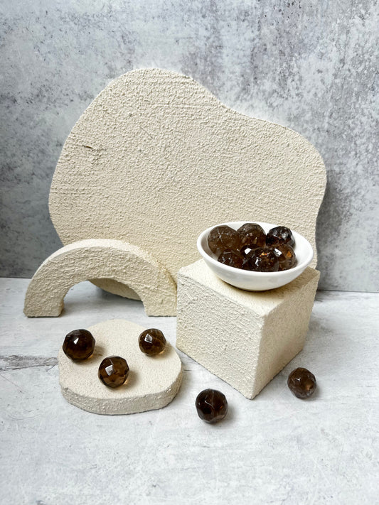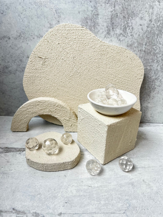 Mini Faceted Disco Ball Spheres (Clear Quartz + Smoky Quartz)