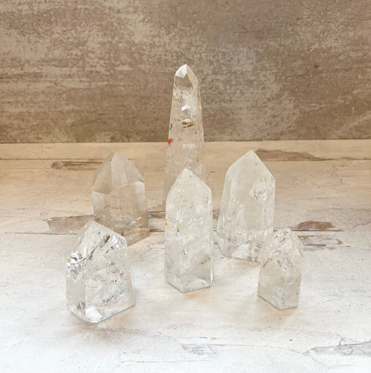 These gorgeous, high-vibe towers help you connect to your angels, higher consciousness, and divine wisdom. They are filled with rainbows, which is believed to mean that miracles are held within this stone! Fire and Ice Quartz also balances your light and shadow allowing you to understand yourself a little bit more. Because these specimens are a point, it amplifies the energy to the direction it's pointing in. These are perfect for your sacred space at home and/or crystal grid!