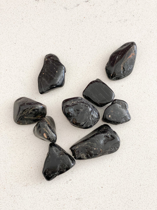 Black Tourmaline Tumbled Pocket Stone- Energetic Protection, Clearing + Grounding