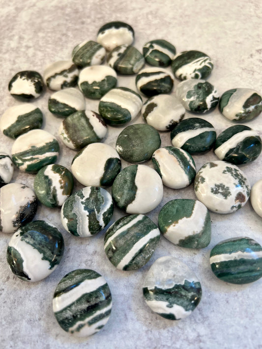 Green Sardonyx has such a fiery energy! These adorable coins help call in luck specifically around money. This amazing stone encourages you to be confident and courageous in your goals and what you want in your life!