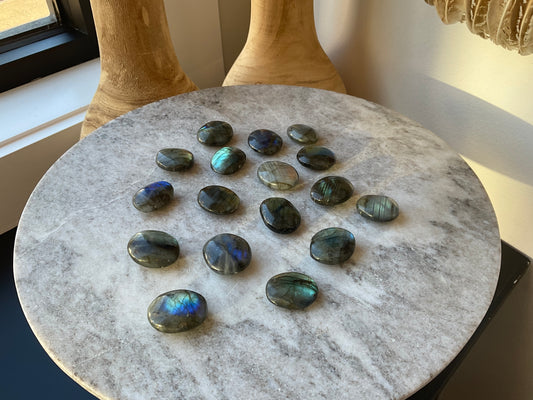 Labradorite has a historic tale that says that the Northern Lights fell from the sky into these stones. Labradorite is a favorite at Spirit + Soul Studio and these beautiful tumbles have lots of flash and magic. It's amazing to see them catch the light!
