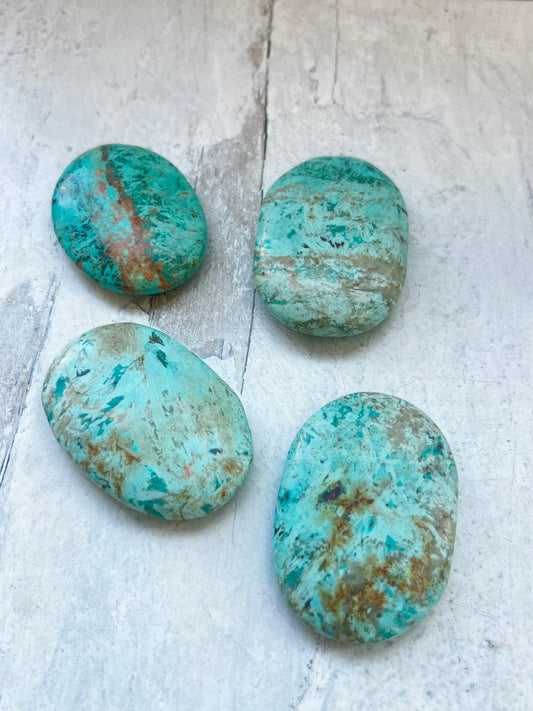 Turquoise + Chrysocolla Palm Stones- Tranquility, Purification, Harmony, Communication