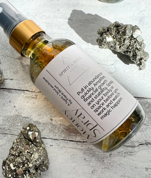 Looking to call in abundance quickly? This energetic spray is hand crafted by Frank Bruni for pulling in abundance, prosperity, and amplifying financial growth and stability! Spray this magical intention spray on your body or space before you work and watch the magic happen!