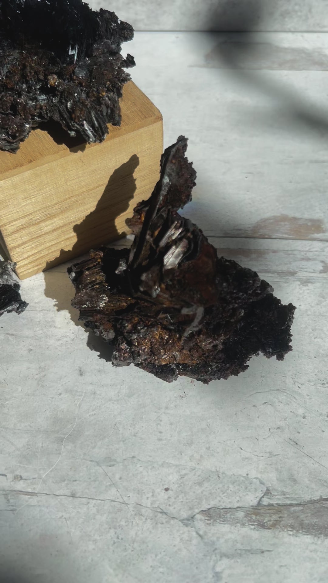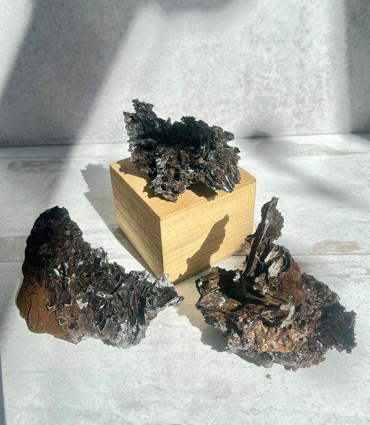 Goethite Selenite is a mystical type of Selenite that is black! It gets it's black hue from an iron mineral called Goethite, that covers the white Selenite and gives it a magical look + feel. This crystal is highly protective + cleansing to the energetic field.