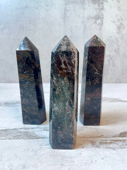 Large Astrophyllite + Garnet Towers- Grounding, Limitless Potential, Protection, Shadow Work