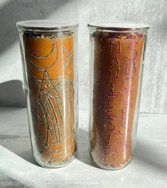 This powerful candle holds the frequency of your manifestations steady. Helping you to manifest your heart's desires with ease, light this beautiful candle and set your intentions. With the help of his intentionally crafted magical candle, you'll get help in becoming a vibrational match for your dreams!