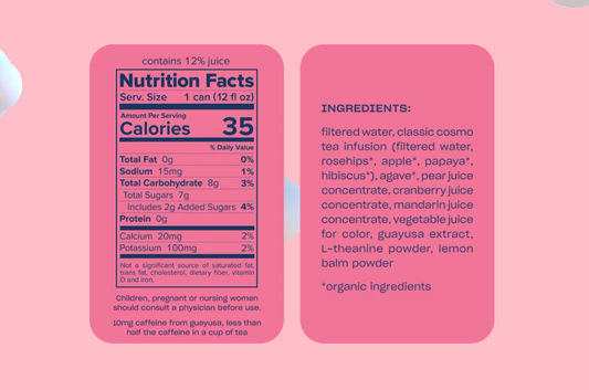 A cosmo for alcohol-free moments, with refreshing cranberry & lime juice. Infused with uplifting Guayusa & balancing adaptogens. A mocktail with benefits- lightly sparkling, low calorie- with way less sugar than a cocktail!
