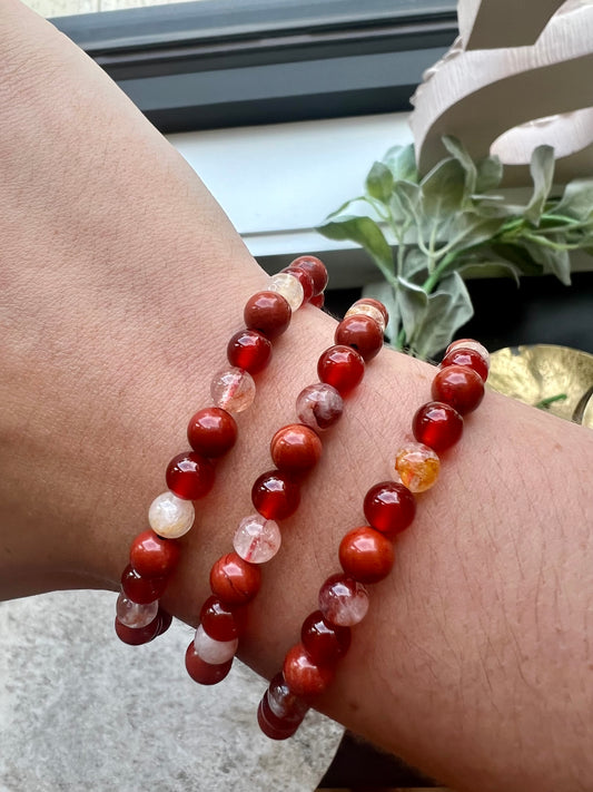 Our Root chakra is our connection and foundation to our physical world and bodies. It is our first chakra located at the base of your spine. When your root chakra is blocked you feel insecure, anxious, you may lack trust, and have low energy. This bracelet is mixed with Carnelian for vitality, Red Jasper for balance and security, and Hematoid for grounding!